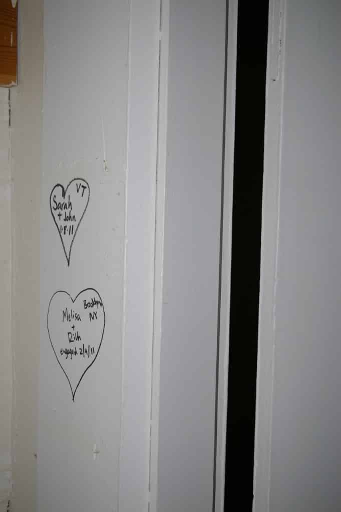 In March alone we will host two intimate weddings at Inn Victoria and I promise to blog about them….but in the meantime take a look at some photos of recent engagements, link to our most sought after wedding package, (“I Did It My Way”) and look into a small portion of our “closet of love”! That’s right, some love-birds have left behind a statement of love in hearts on the inside of the Princess Alice room. There are many and they range back twenty years.